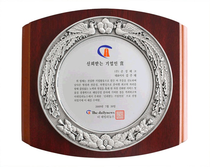상장 | 신뢰받는 기업인상