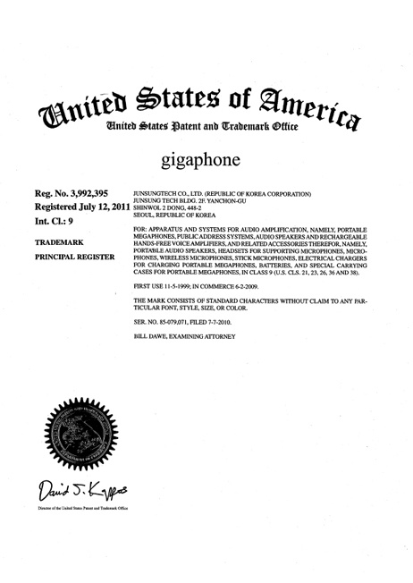 GIGAPHONE® is a registered trademark of JUNSUNGTECH CO., LTD. in the U.S. and other countries.