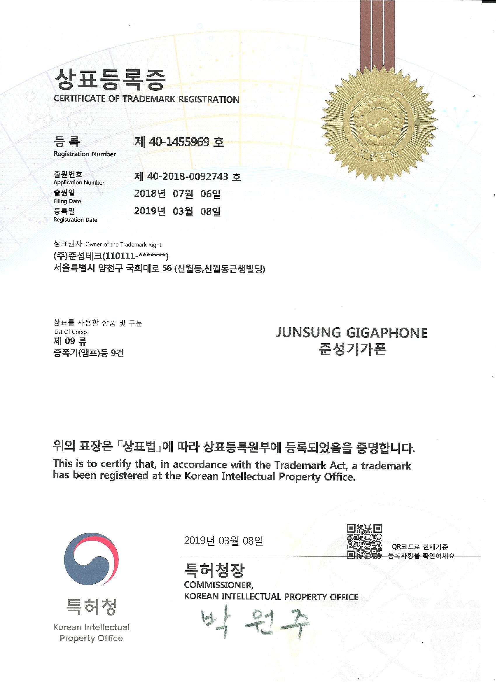 상표등록증 | 준성기가폰