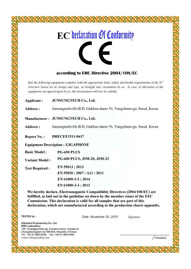 인증서(제품) | CE PG-650PLUS외(방송통신기기 인증서)