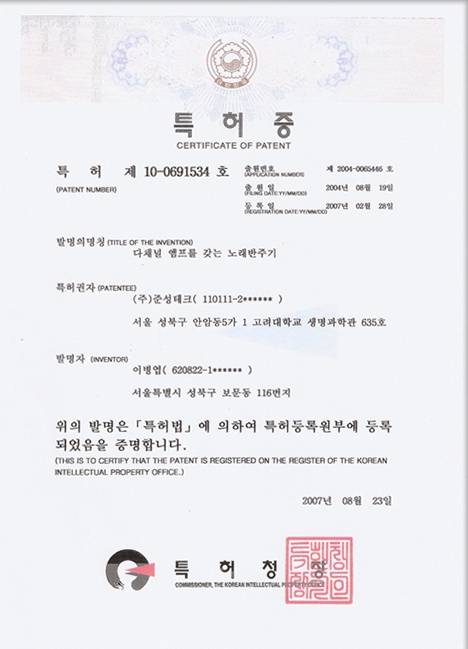 특허증 | 다채널 엠프를 갖는 노래반주기