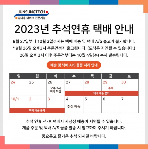 2023년 추석 연휴 기간 배송 및 택배 A/S 물품 처리 안내